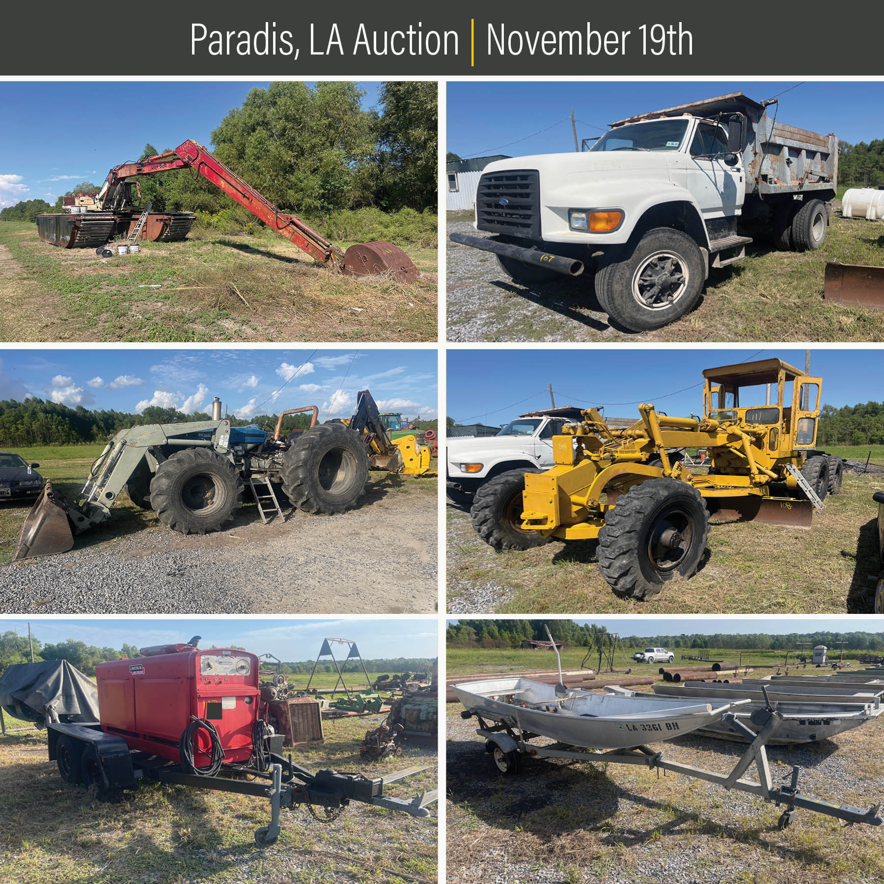 Henderson Auctions has been commissioned to sell construction, vehicles, and more in an online-only auction. Lots will start closing at 11am on Wednesday, November 19, 2025. What can we sell for you? Call today: 225-686-2252 or 1-800-850-2252!